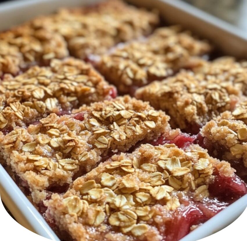 These bars feature a buttery oatmeal crust, a tangy rhubarb filling, and a crisp streusel toppingâperfect for spring and summer!