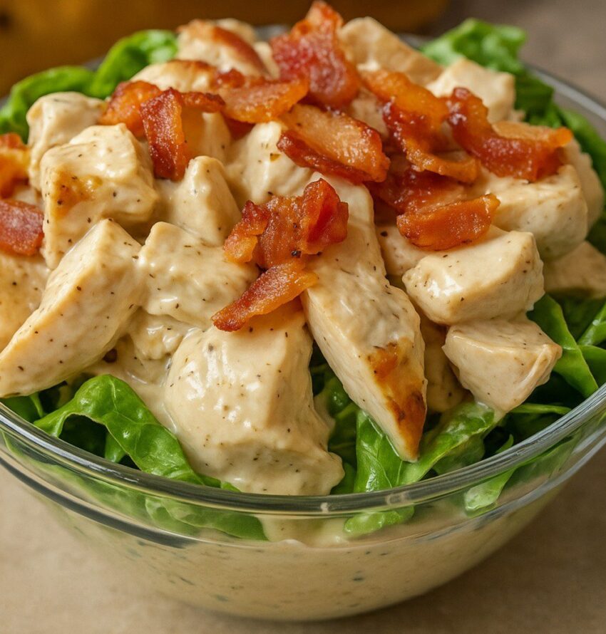 Creamy, tangy, and packed with smoky bacon, this easy chicken salad is perfect for sandwiches, wraps, or lettuce cups! Ready in 10 minutes with irresistible flavor.