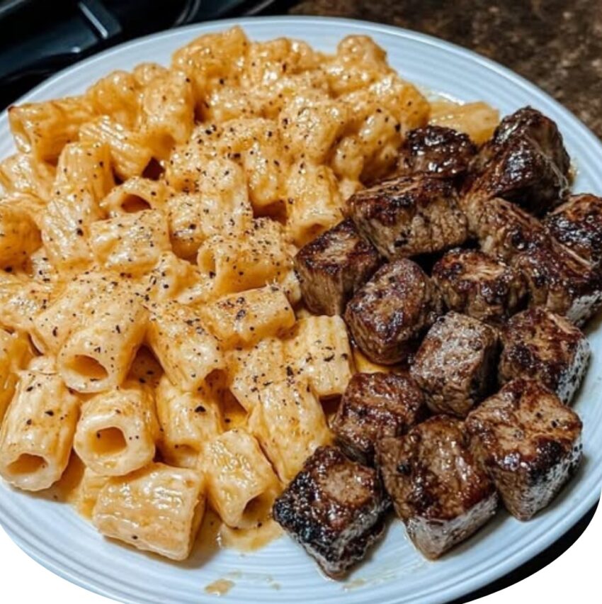 Cajun Steak Tips in Cheesy Rigatoni Parmesan Sauce 🍝🥩