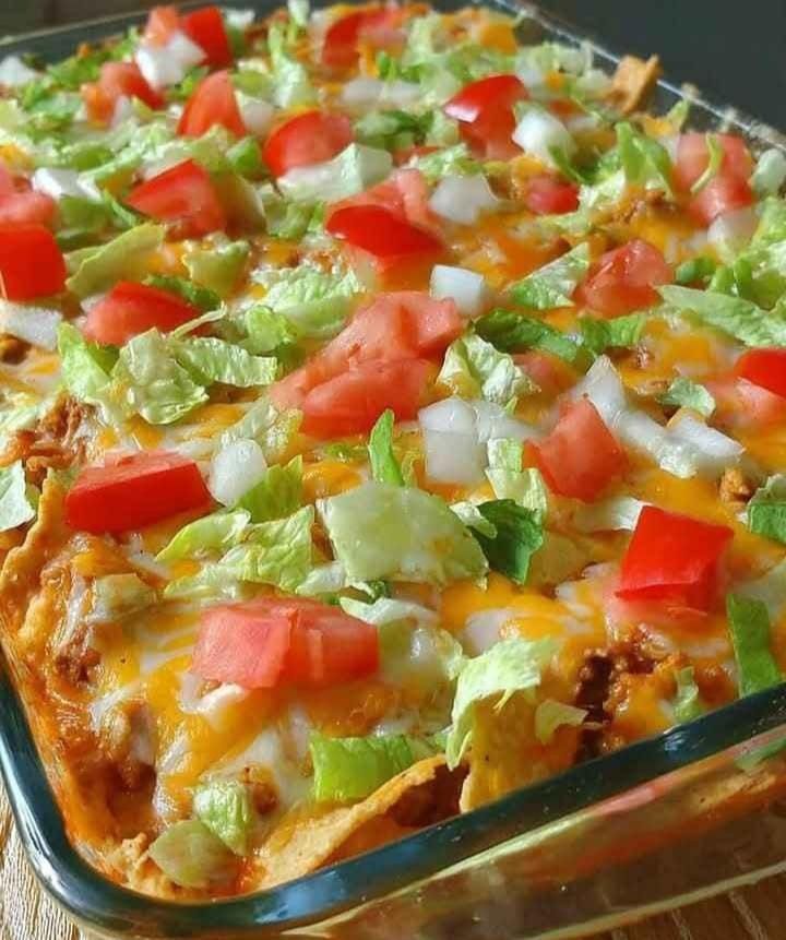 A cheesy, layered Tex-Mex comfort dish with tender chicken, crispy tortillas, and a creamy sauce—ready in 45 minutes!