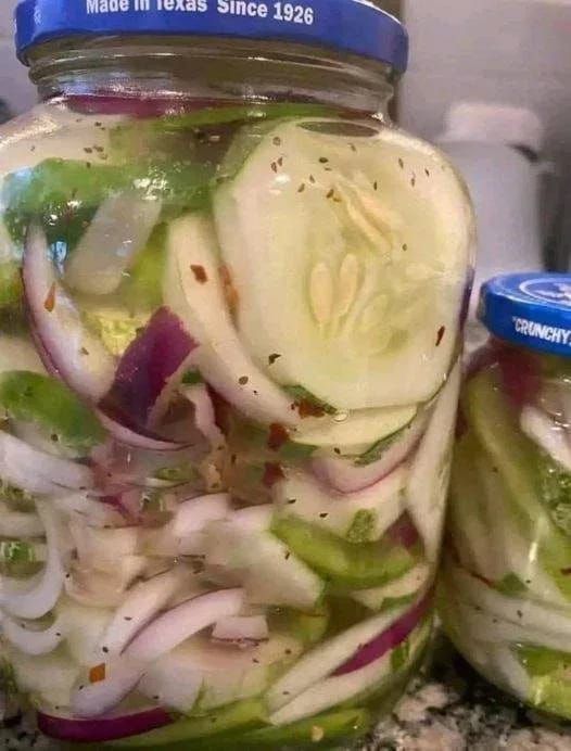 Keep a jar of this bright, pickled cucumber salad in your fridge for a instant healthy side. Perfect for burgers, grilled meats, or as a snack straight from the jar!