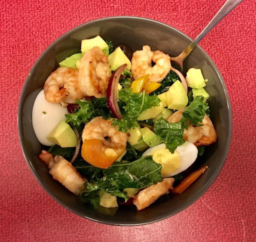 - Protein from shrimp + quinoa