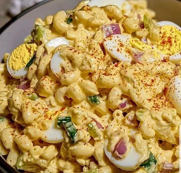A creamy, tangy mashup of two picnic classics—loaded with hard-boiled eggs, tender pasta, and a hint of smoky paprika!