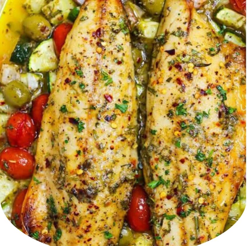 *Flaky, herb-crusted fish with garlic, lemon, and olive oilâlight yet bursting with flavor! Ready in 30 minutes.*