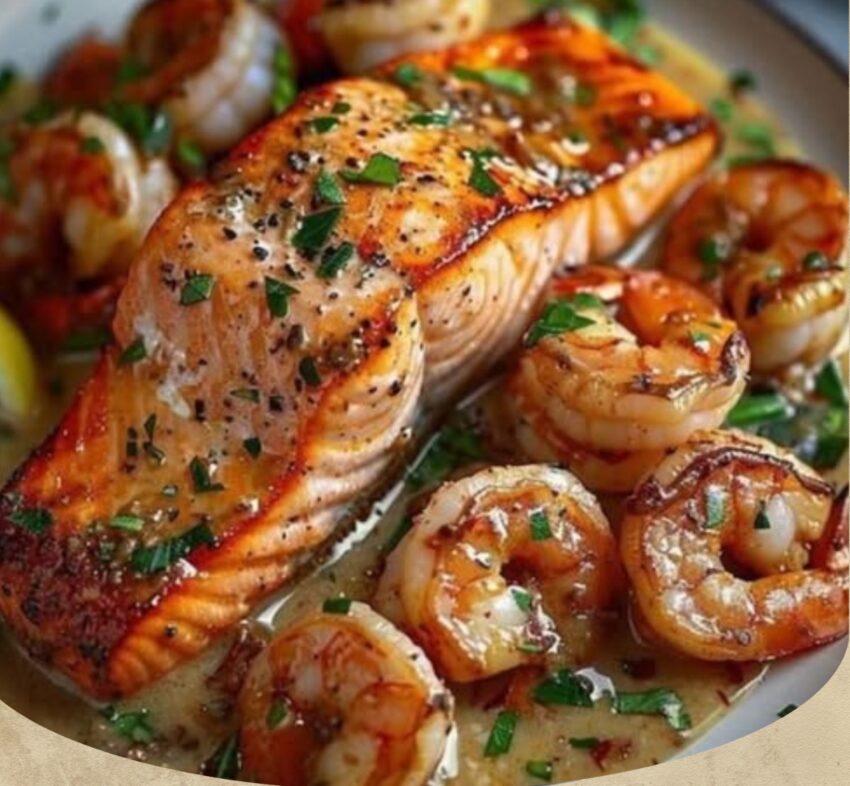 Garlic Butter Salmon & Shrimp 🧈🐟🍤🍋