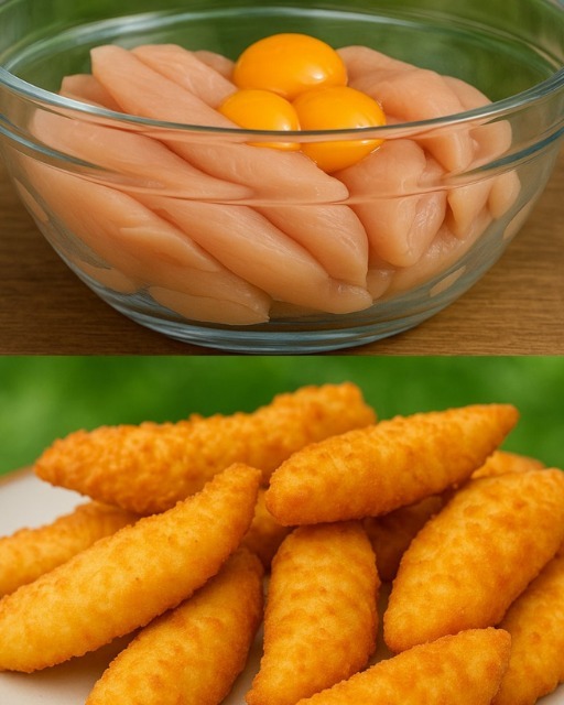 Dip each strip: Egg → Spice Mix → Egg → Spice Mix (double coating = EXTRA CRISPY!).