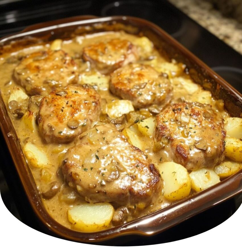 Juicy, tender pork chops smothered in a creamy mushroom and onion gravy—a comforting one-pan wonder ready in 30 minutes!
