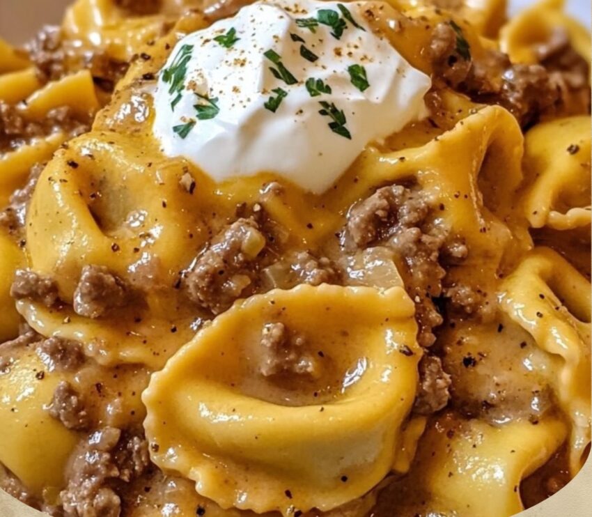 Skillet Beef Stroganoff Tortellini 🍝🍖🧄🌿